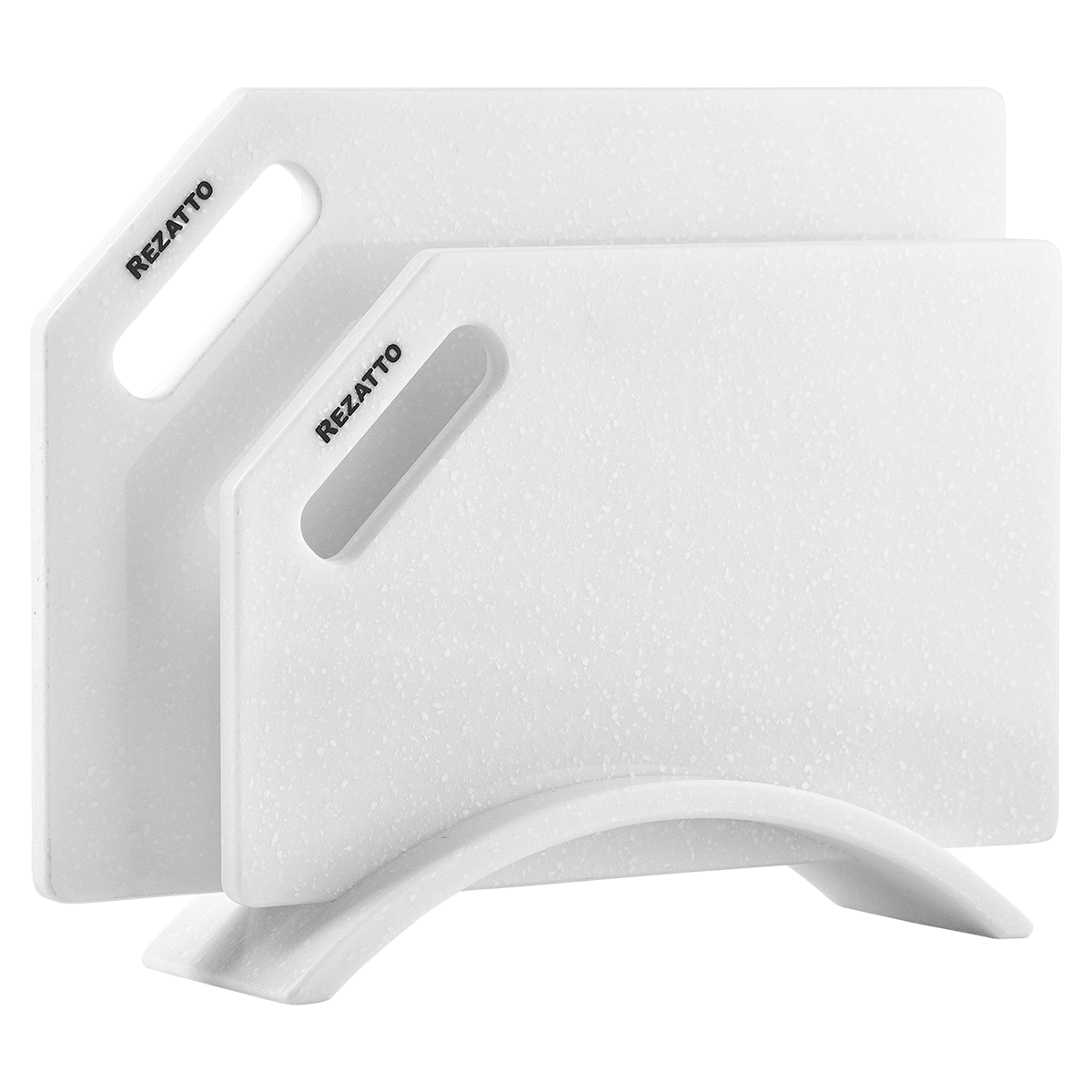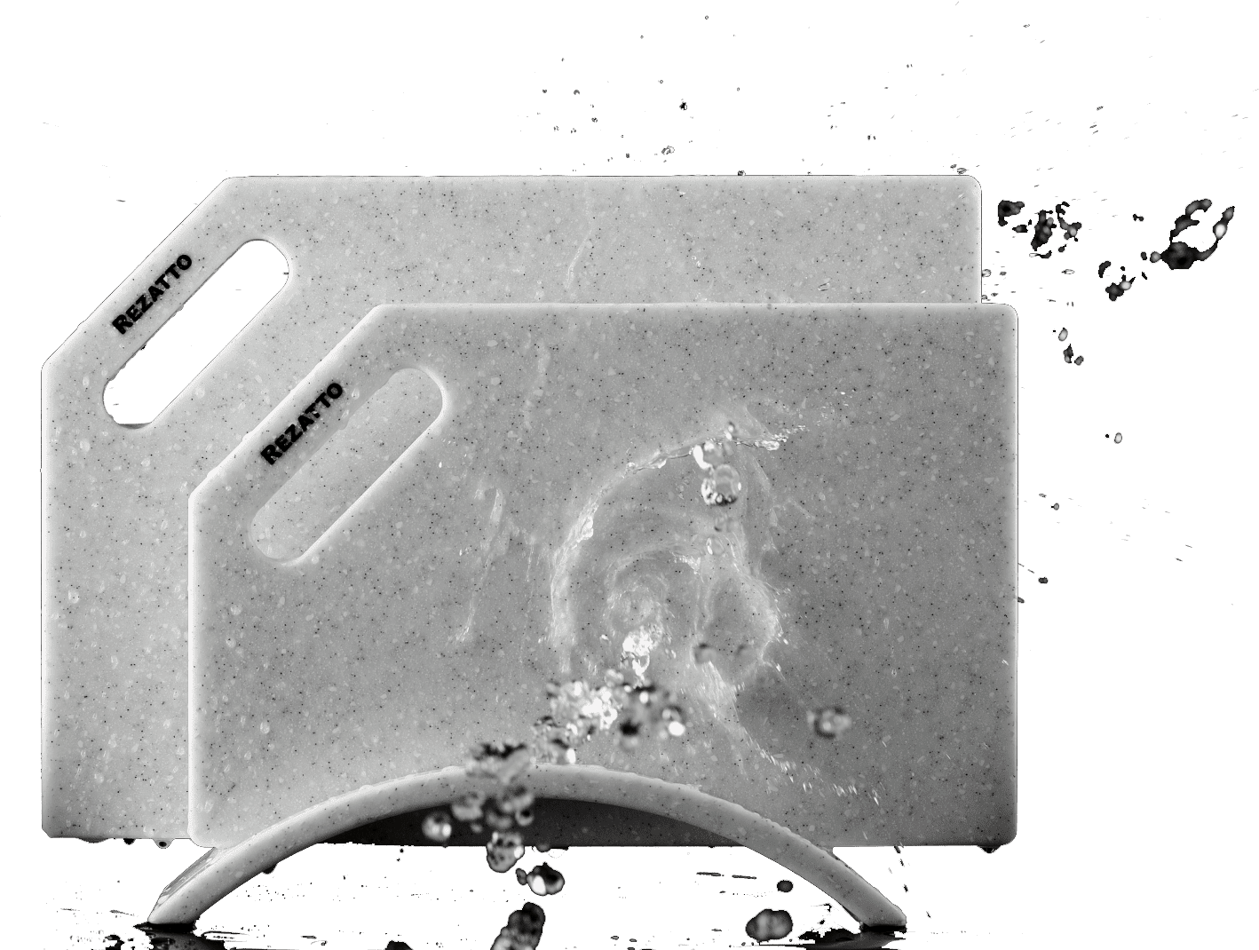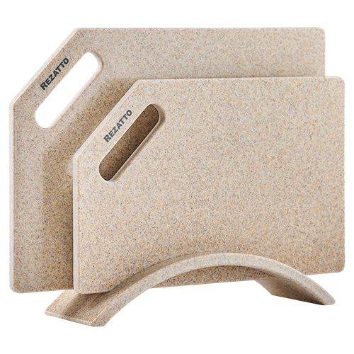 Дошки Rezatto не затуплюють передчасно ножі, на відміну від дошок зі скла та натурального камню. Матеріал Rezatto податливий до леза ножа, тому не травмує його.