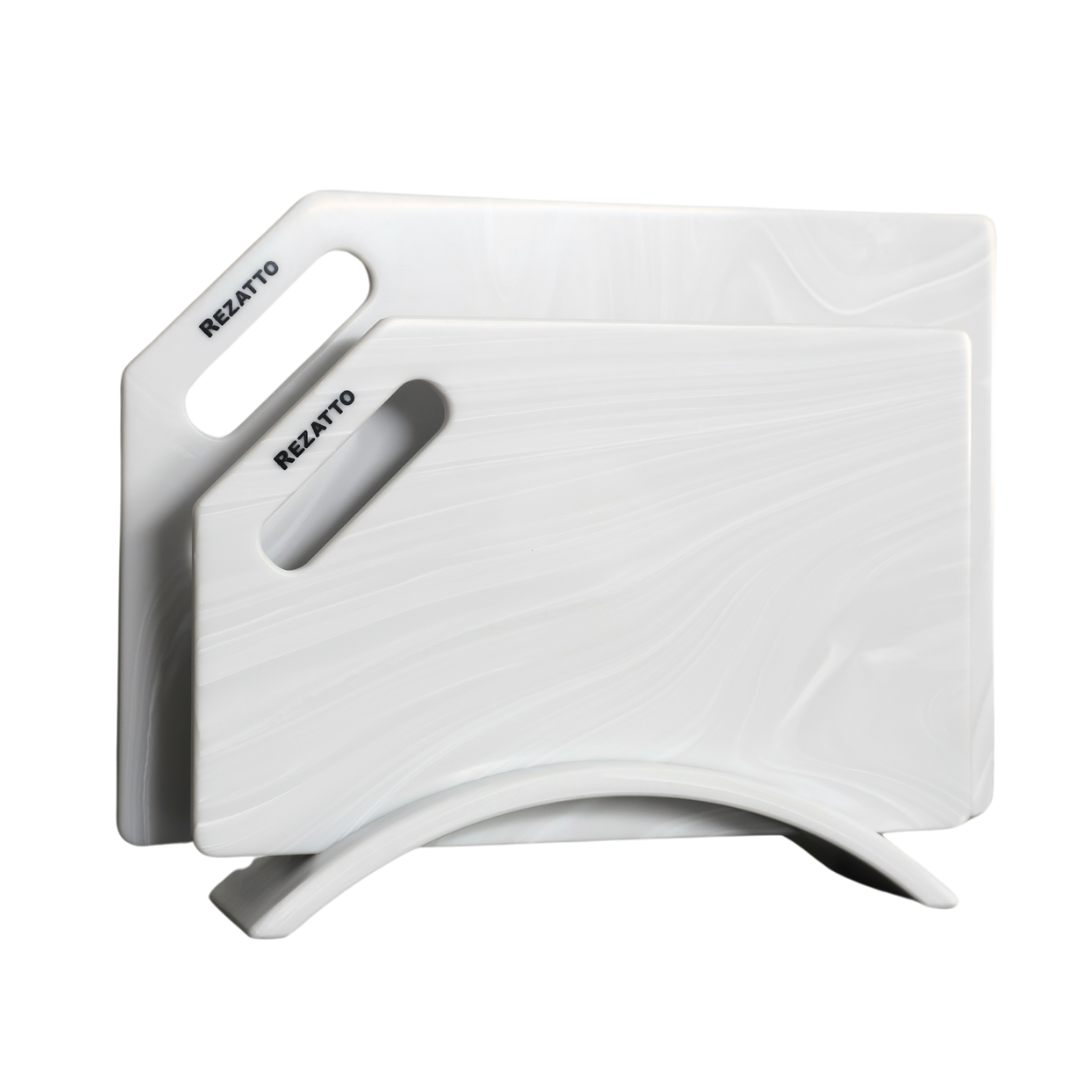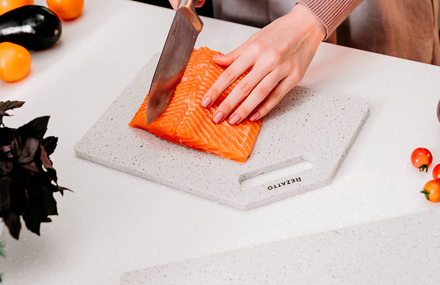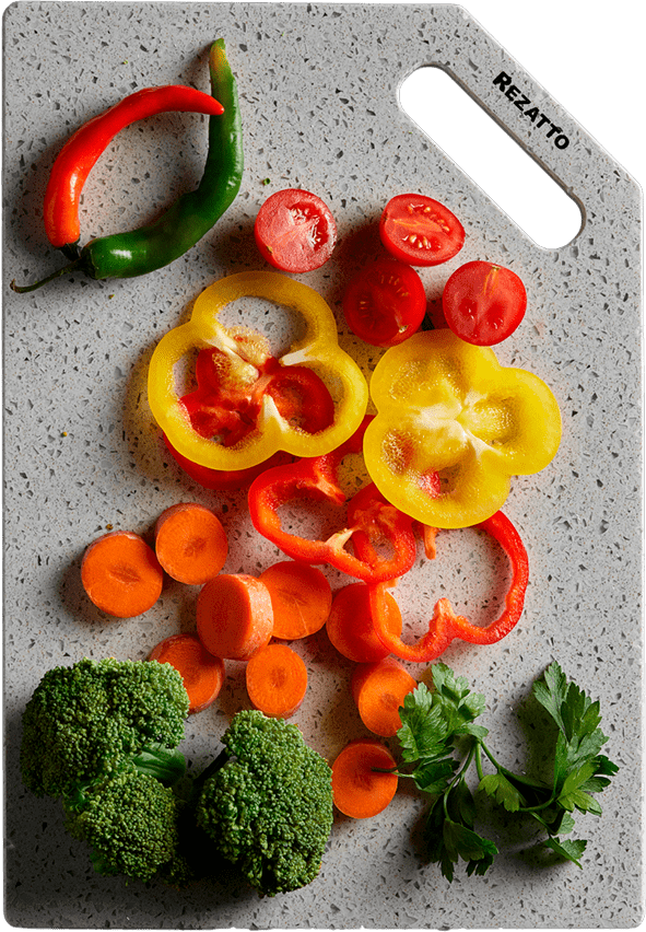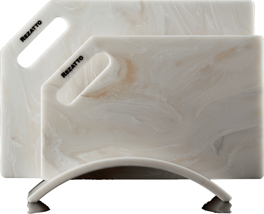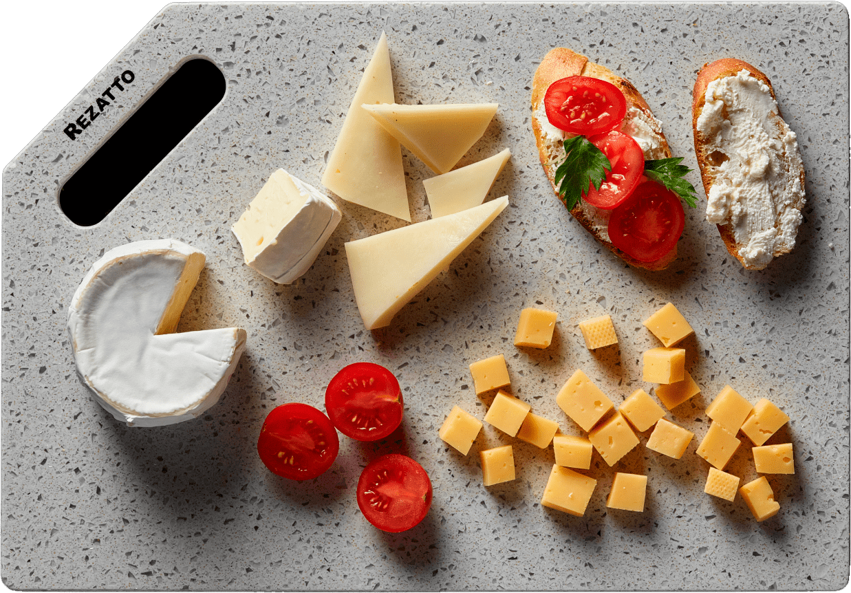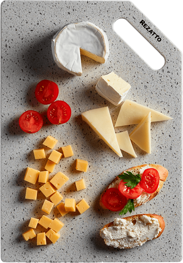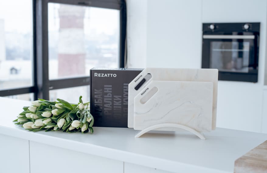 Дошки Rezatto виготовляються із штучного каменю, сертифікованого для контакту з харчовими продуктами.